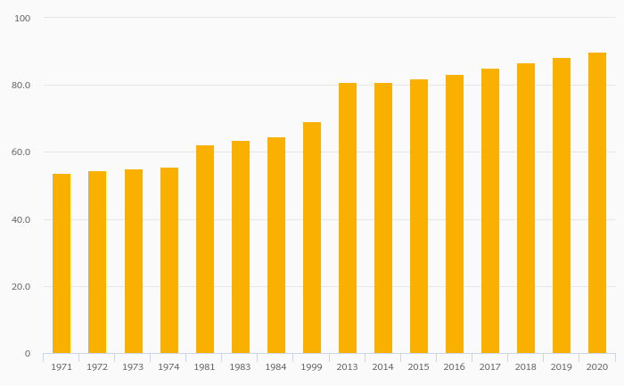 Girls to Boys In Primary and Secondary Education rose 1.57% to 89.8% in Ivory Coast in 2020