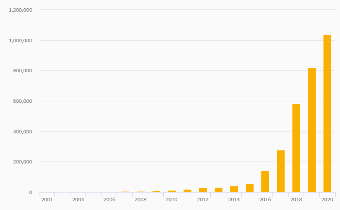 Secure Internet Servers rose 22.6% to 1,022,461 in Spain in 2020