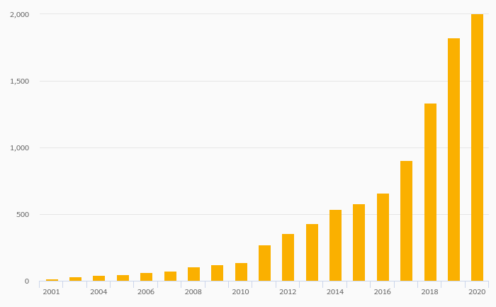 Secure Internet Servers rose 9.53% to 2,000 in Liechtenstein in 2020