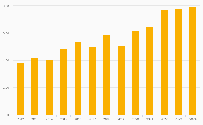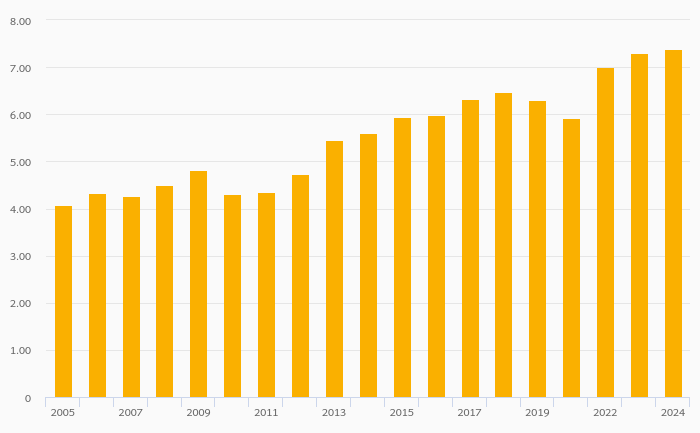 Bank Equity (As % of Bank Assets) rose 1.16% to 7.38% in Germany in 2024