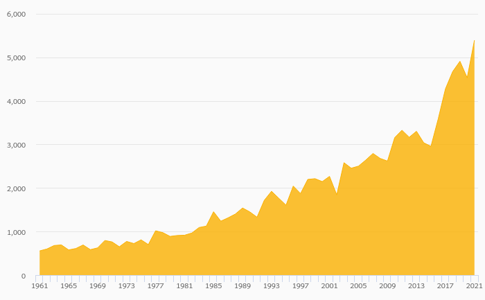 Spice Consumption (Total) rose 19.0% to 5,394 kt in India in 2021