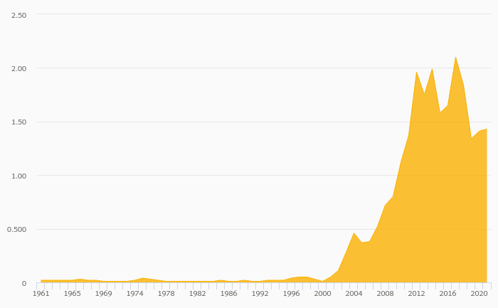 Egg Consumption Per Capita rose 1.42% to 1.43 kg in Mozambique in 2021