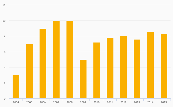 Lead (Refined) Production fell 3.02% to 8.33 kt in Estonia in 2015
