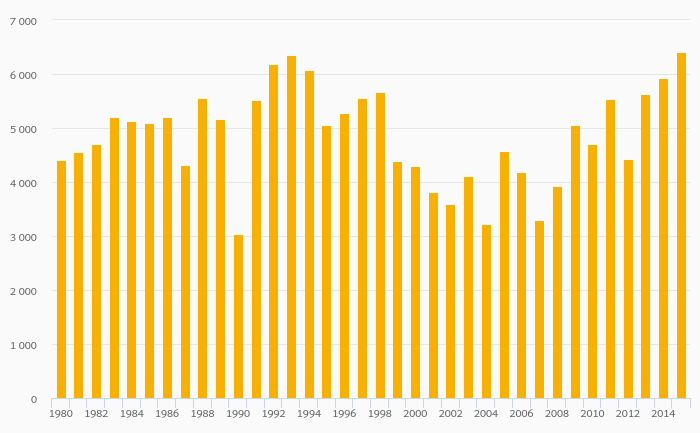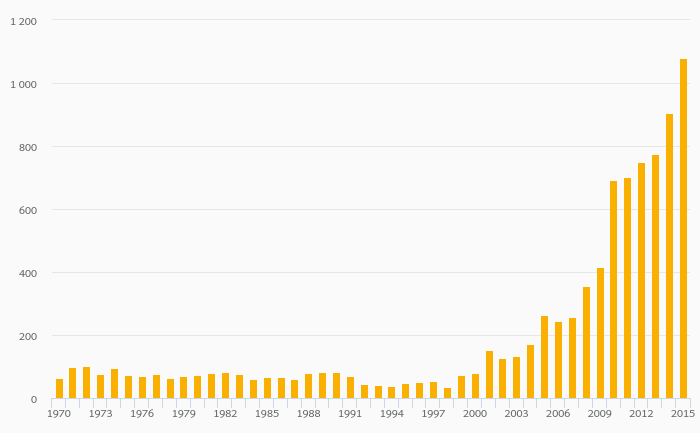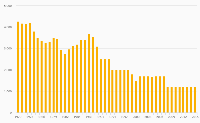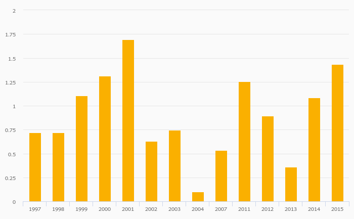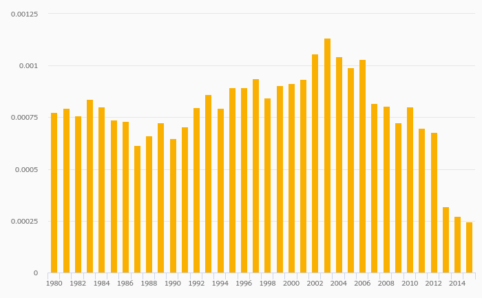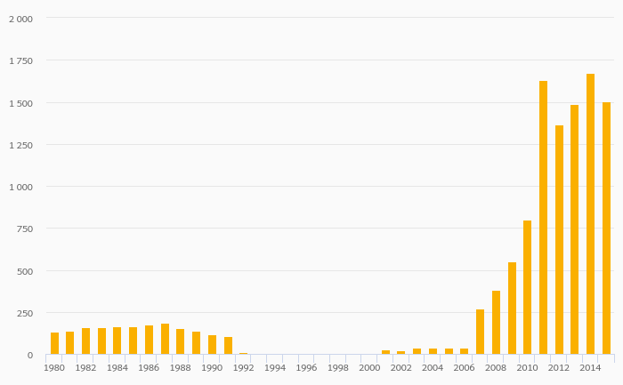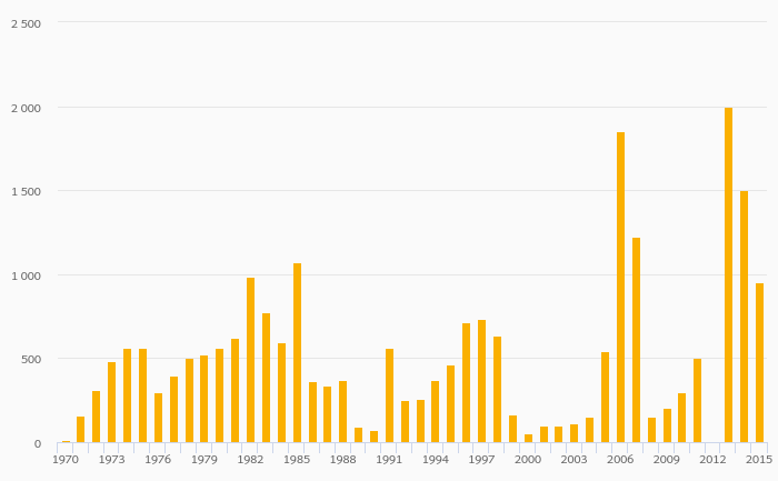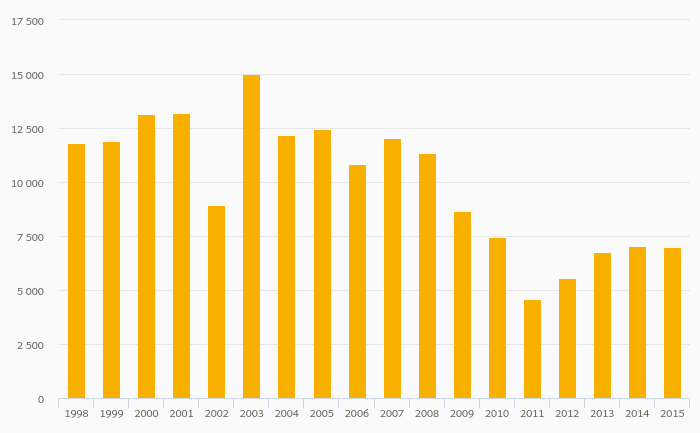 Gold (Mine) Production fell 36.7% to 950 kg in Costa Rica in 2015