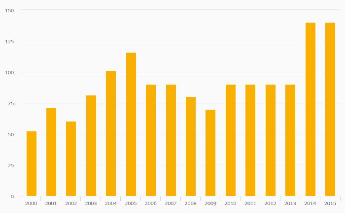 Barytes Production rose 0% to 140 kt in Vietnam in 2015