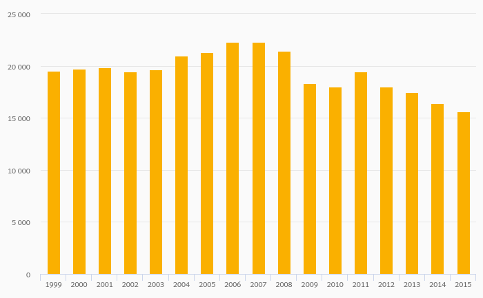 Cement (Finished) Production fell 5.05% to 15,597 kt in France in 2015