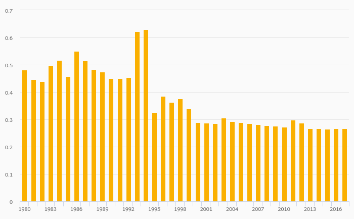 Crude Oil Reserves (As % of Worldwide Reserves) rose 0% to 0.267% in Egypt in 2017