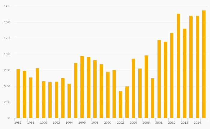 Jet Fuel Consumption rose 5.37% to 16.9 '000 bpd in Peru in 2015