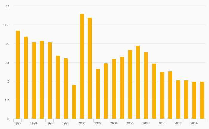 Jet Fuel Consumption rose 16.5% to 4.75 '000 bpd in Iceland in 2016