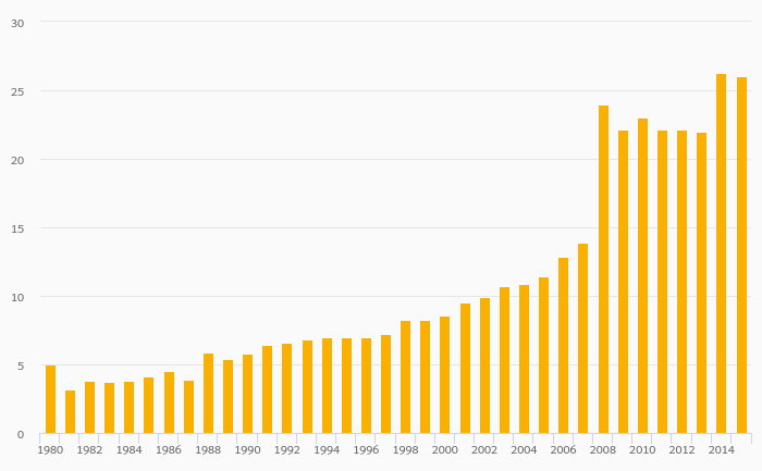 Total Petroleum Consumption fell 1.09% to 26.0 '000 bpd in Uganda in 2015