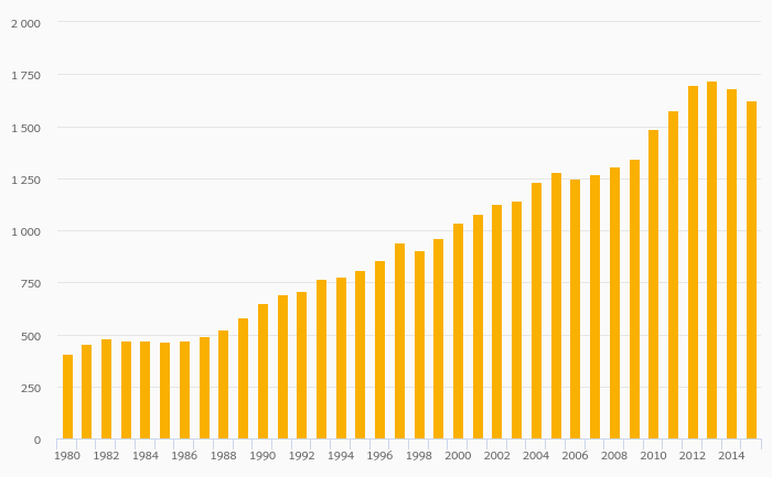 Total Petroleum Consumption fell 3.71% to 1,622 '000 bpd in Indonesia in 2015