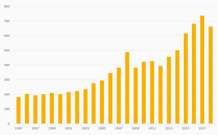 International Tourism, Expenditure (USD) rose 18.2% to USD 1,652 mil in Estonia in 2018