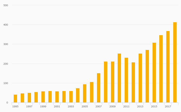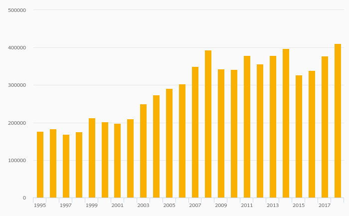 International Tourism, Expenditure (USD) rose 8.96% to USD 411,095 mil in the European Union in 2018