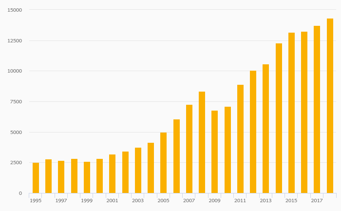 International Tourism, Expenditure (USD) rose 11.0% to USD 9,975 mil in Israel in 2018
