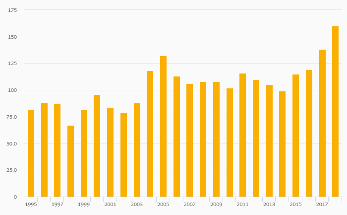 International Tourism, Expenditure (USD) rose 15.9% to USD 160 mil in Fiji in 2018