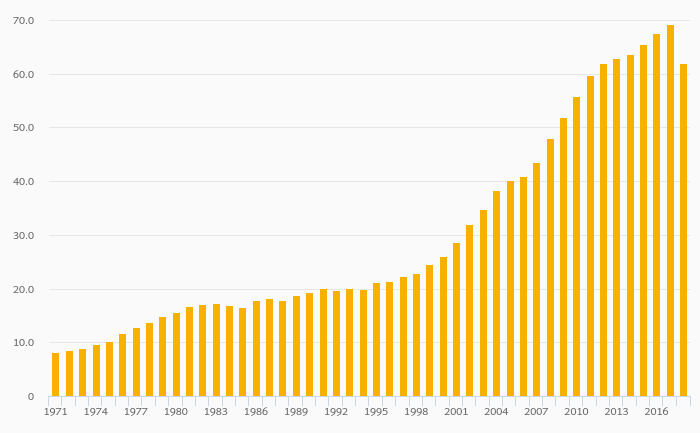 Gross School Enrollment, Female (Primary Education) rose 0% to 62.0% in Niger in 2019