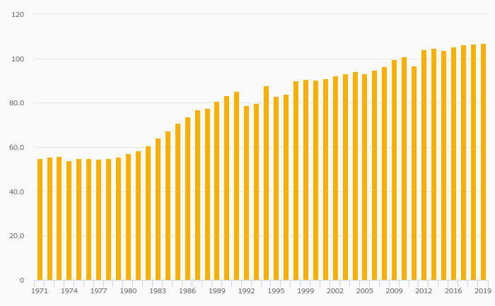 Gross School Enrollment, Female (Primary Education) rose 2.85% to 110% in Algeria in 2020