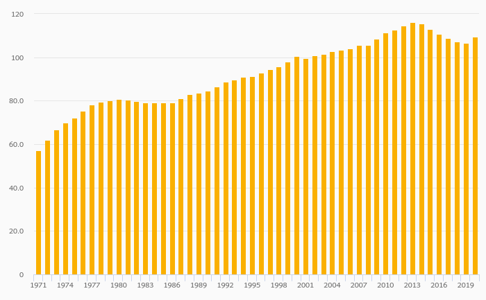 Gross School Enrollment, Female (Primary Education) rose 1.20% to 116% in United Arab Emirates in 2020