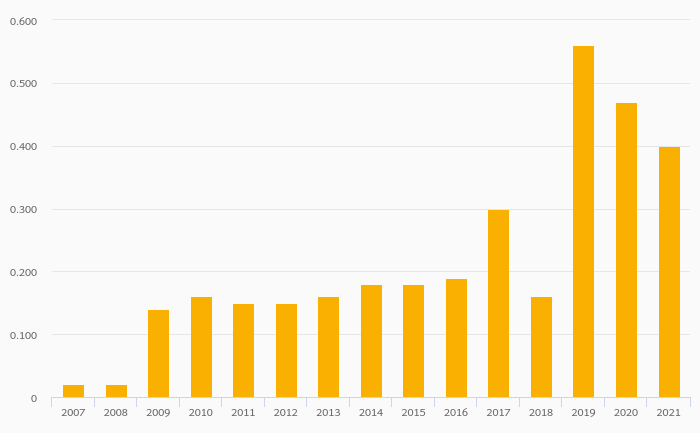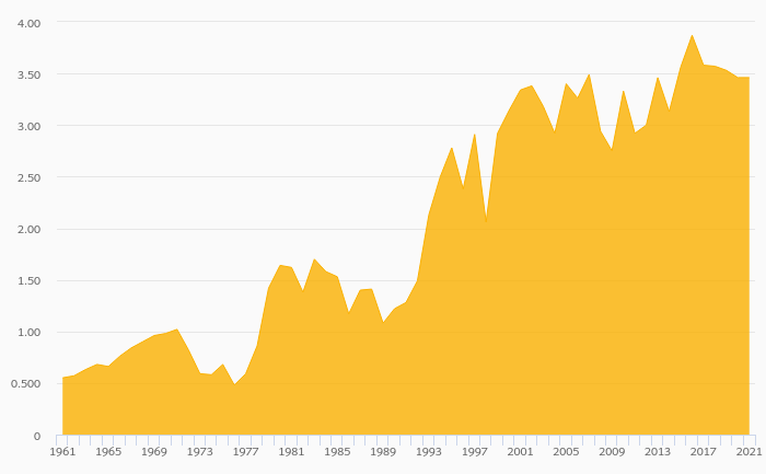 Egg Consumption Per Capita rose 1.04% to 1.95 kg in Laos in 2021