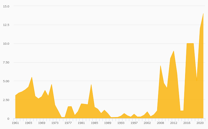 Spice Consumption (Total) rose 16.7% to 14.0 kt in Afghanistan in 2021