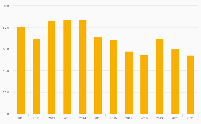 Coconut Consumption Per Capita fell 10.2% to 54.2 kg in Papua New Guinea in 2021