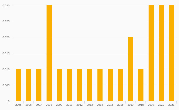 Coconut Consumption Per Capita rose 0% to 0.030 kg in Uzbekistan in 2021
