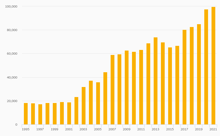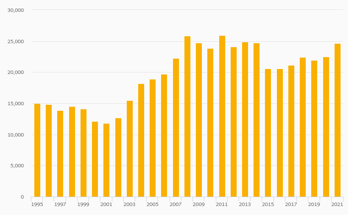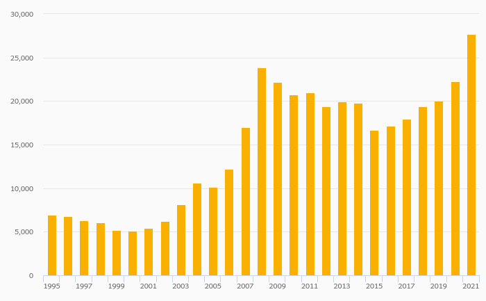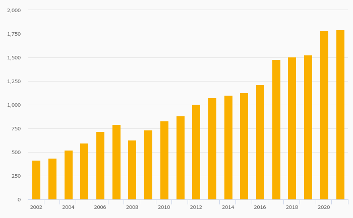 Households' Assets In Dwellings (USD) rose 17.3% to USD 460 bil in Sweden in 2021
