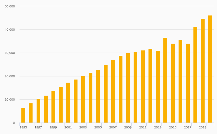 Households' Assets In Dwellings (Local Currency) rose 3.30% to HUF 46,201 bil in Hungary in 2020