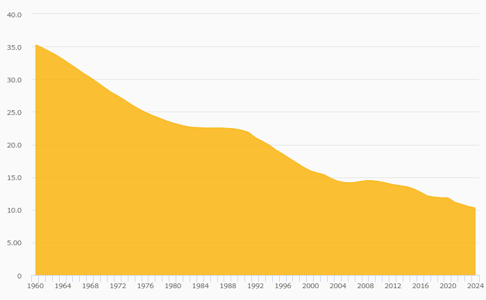 Crude Birth Rate (Per 1,000 People) fell 2.25% to 10.3 births in Chile in 2024