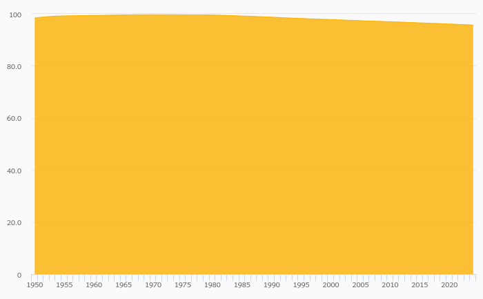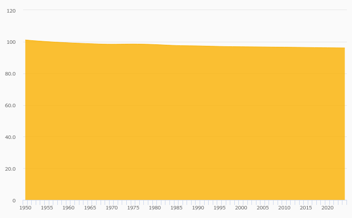 Sex Ratio (Males Per 100 Females) fell 0.025% to 96.1 persons in Turkey in 2024