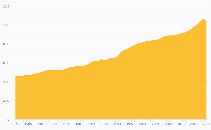 Egg Consumption Per Capita fell 1.89% to 10.4 kg in the World in 2021