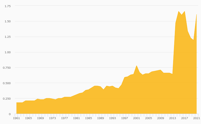 Egg Consumption Per Capita rose 35.3% to 1.61 kg in Guinea Bissau in 2021