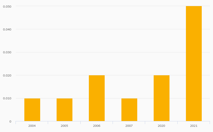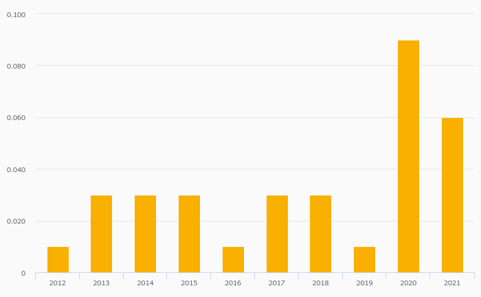 Coconut Consumption Per Capita rose 150% to 0.050 kg in Kyrgyzstan in 2021