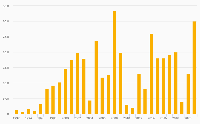 Bean Consumption (Total) rose 131% to 30.0 kt in Kyrgyzstan in 2021