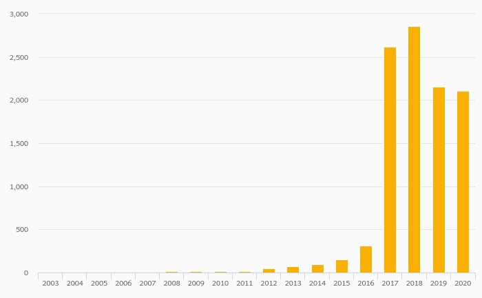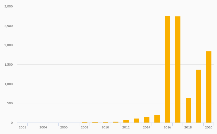 Secure Internet Servers rose 9.53% to 2,000 in Liechtenstein in 2020