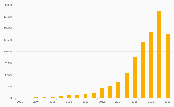 Secure Internet Servers fell 25.6% to 13,901 in United Arab Emirates in 2020