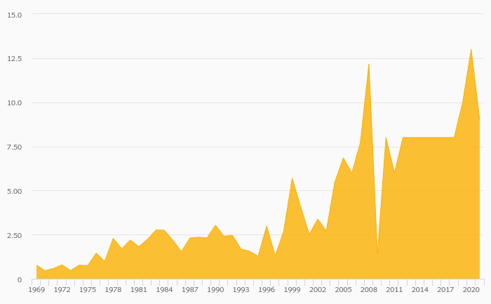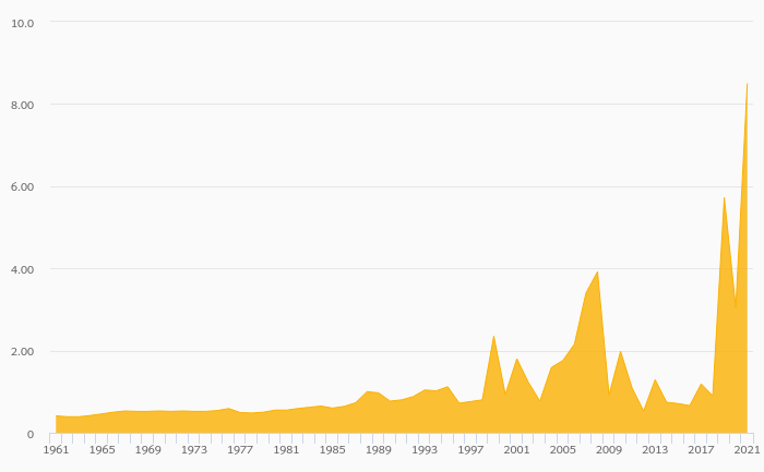 Egg Consumption Per Capita rose 179% to 8.50 kg in Gambia in 2021