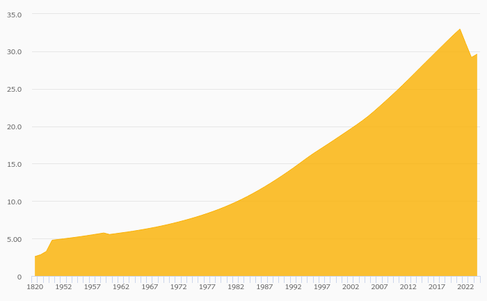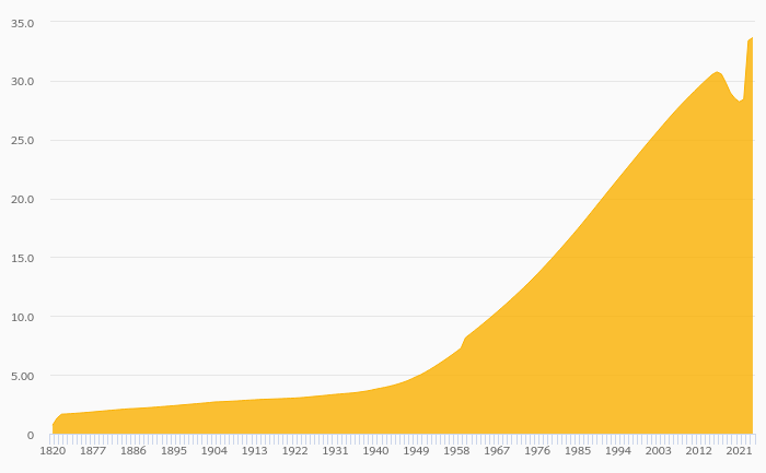 Population (Total) rose 0.748% to 33.7 mil in Venezuela in 2024