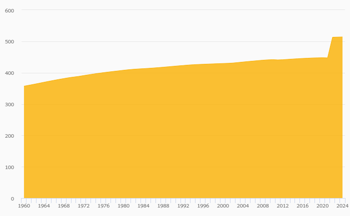 Population (Total) rose 0.079% to 514 mil in the European Union in 2024