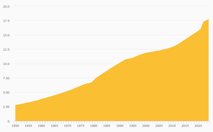 Population (Total) rose 1.31% to 17.7 mil in Zimbabwe in 2024