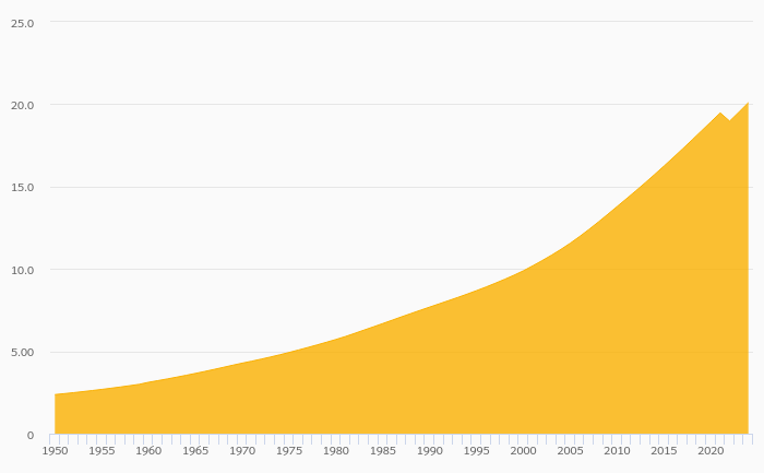 Population (Total) rose 2.92% to 20.1 mil in Zambia in 2024