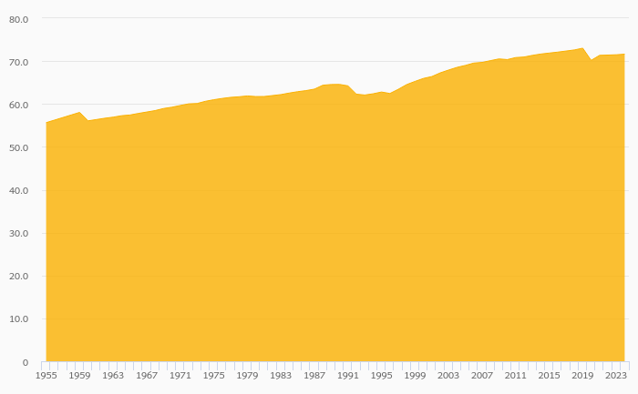 Life Expectancy at Birth (Female) rose 0.201% to 71.6 years in Tajikistan in 2024