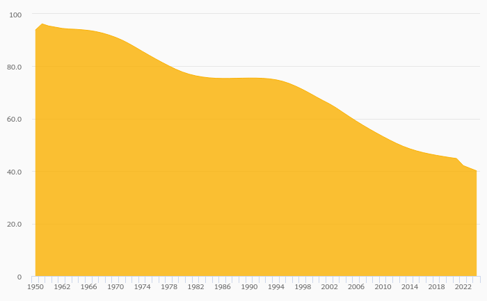 Youth Dependency Ratio fell 2.43% to 40.1% in Paraguay in 2024