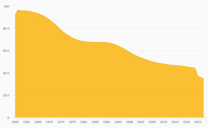 Youth Dependency Ratio fell 3.02% to 34.8% in Fiji in 2024