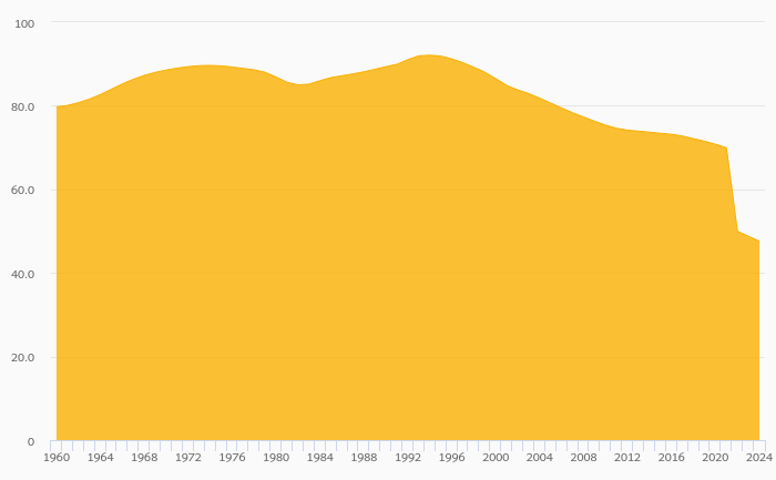 Total Dependency Ratio fell 2.42% to 47.6% in Pakistan in 2024