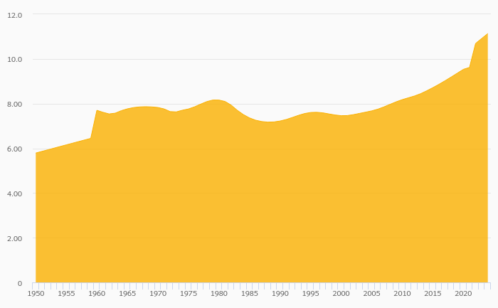 Old Age Dependency Ratio rose 2.01% to 11.1% in Paraguay in 2024