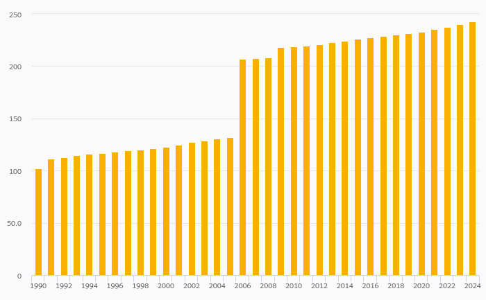 Number of Households rose 1.02% to 242 mil in the European Union in 2024