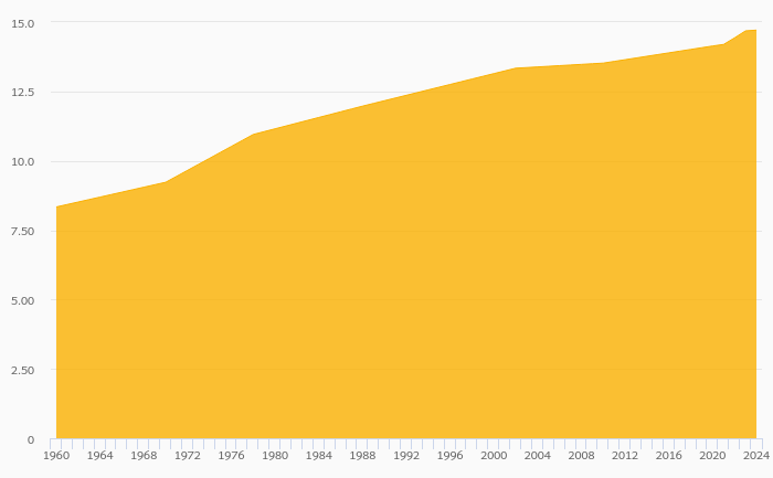 Old Age Dependency Ratio rose 4.19% to 15.2% in Dem. People's Republic of Korea in 2024