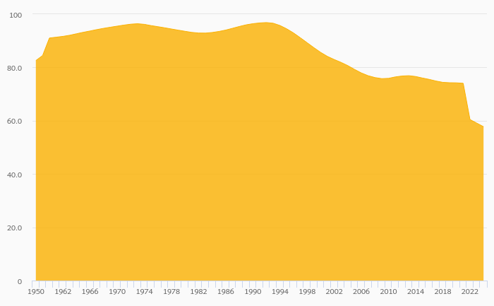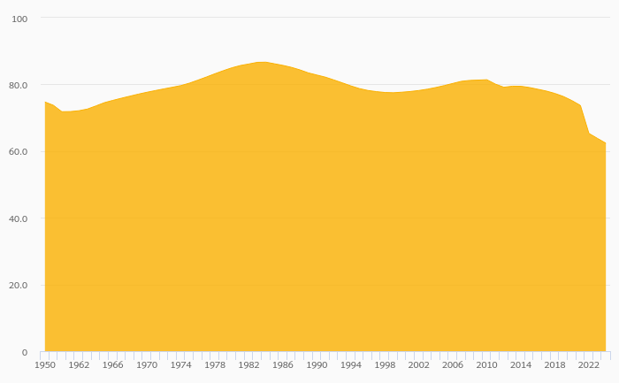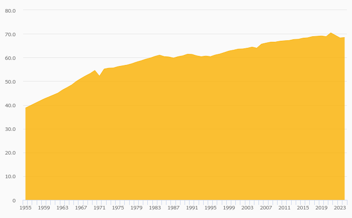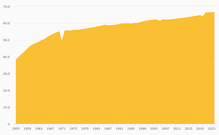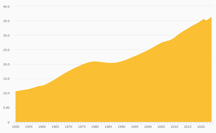 Old Age Dependency Ratio rose 1.74% to 36.2% in Greece in 2024