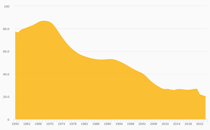 Youth Dependency Ratio fell 3.93% to 20.1% in Bahrain in 2024